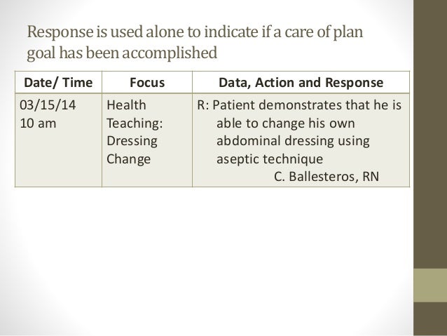 First stage of labor in progress. Given tylenol 325mg 30 mins prior to drsg change. For example, say the patient has met a goal on the care plan on demonstrating how to properly use the incentive spirometer. Fdar sample charting for diarrhea.