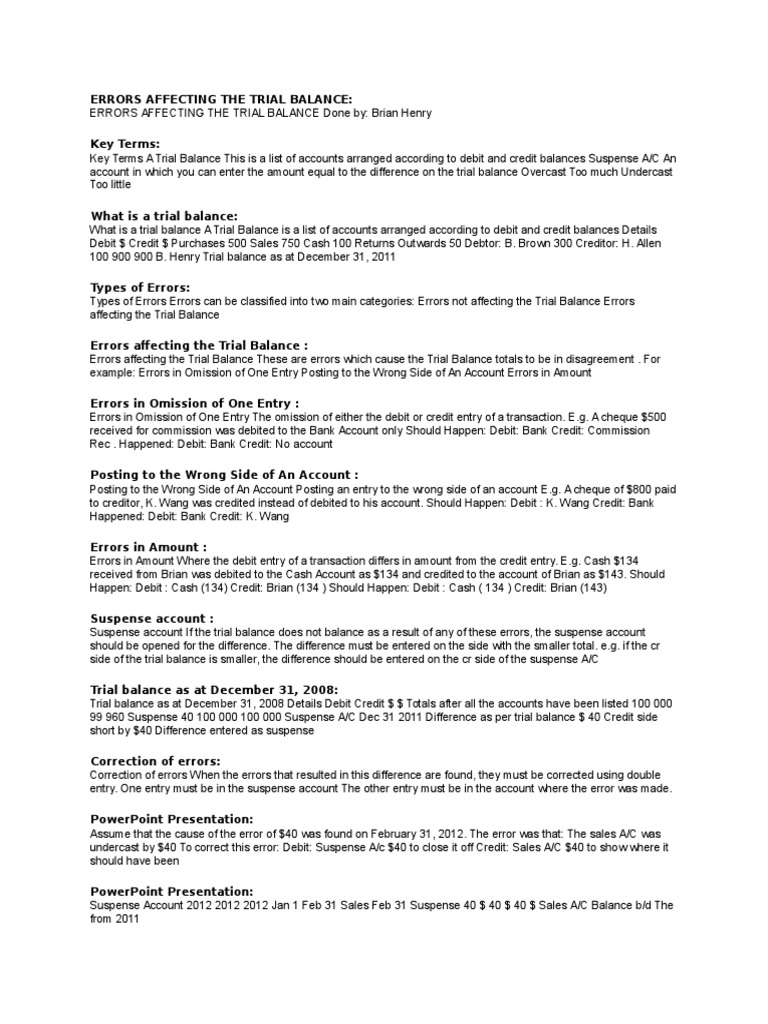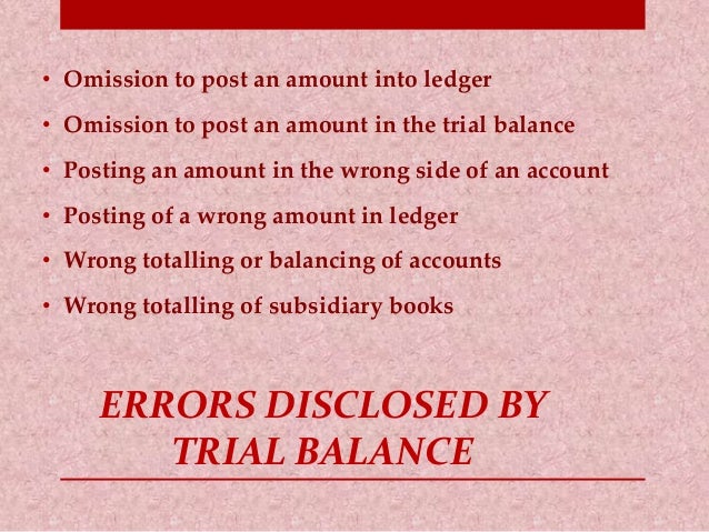 Trial Balance Errors and Their Correction - MyHomeworkWriters from myhomeworkwriters.com Errors disclosed by trial balance. Making a transposition error (recording numbers in incorrect order). Error of partial omission and error of commission affect the agreement of trial balance.