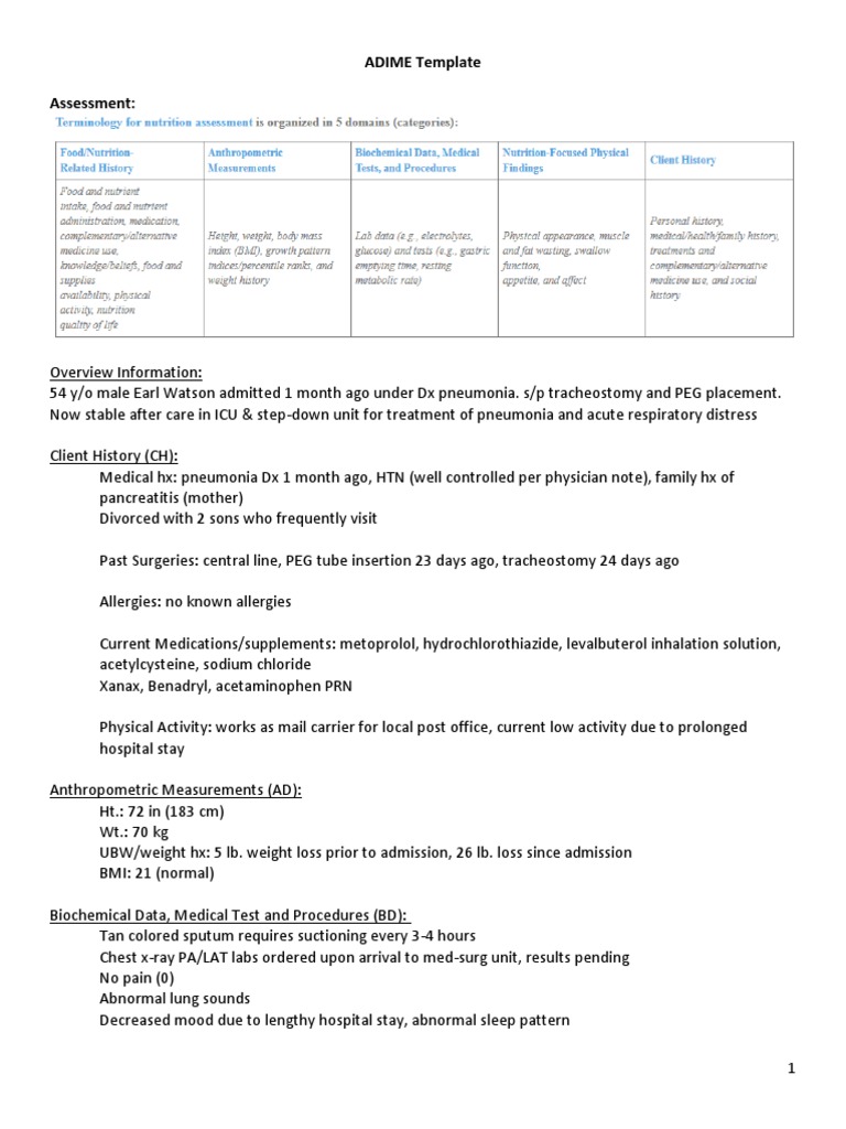 Adime Nutrition Example - bapyaw from d20ohkaloyme4g.cloudfront.net Father died, mi at 59 eer: Answer all the questions in the blank. Complete adime form and write soap note.